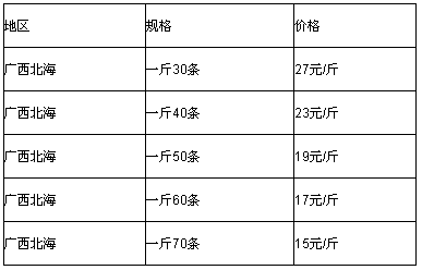 12月13日南美白对虾塘口收购价格(广西北海地区)