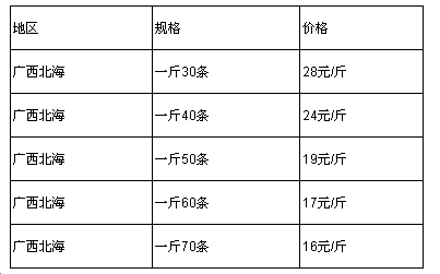 1月4日南美白对虾塘口收购价格(广西北海地区)