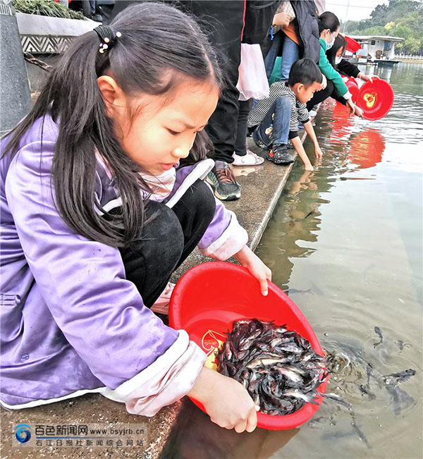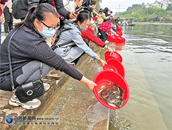 启动仪式结束后,市农业农村局、右江区农业农村局等市、区两级相关单位组织人员在大码头向右江河投放了鳙鱼、赤眼鳟、黄颡鱼等鱼苗100万多尾。