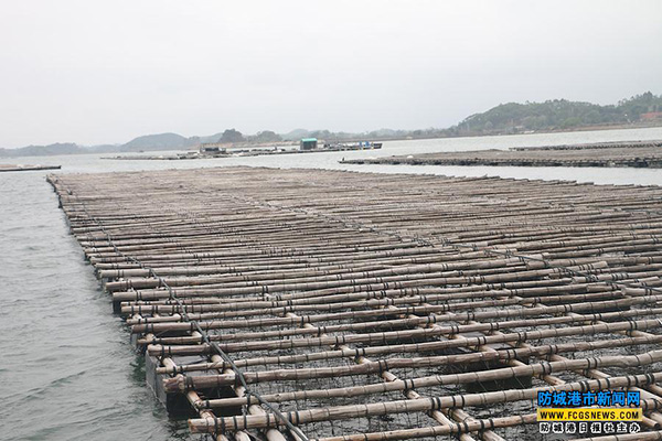 在防城区茅岭镇大陶村茅尾海域,有一片万亩蚝排。3月17日,记者登上快艇来到这片蚝排中,只见海面上漂浮着成片成片的蚝排,一望无际,甚是壮观(见图)。