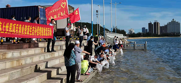 防城港市农业农村局机关党委党员干部有序放生鱼虾苗