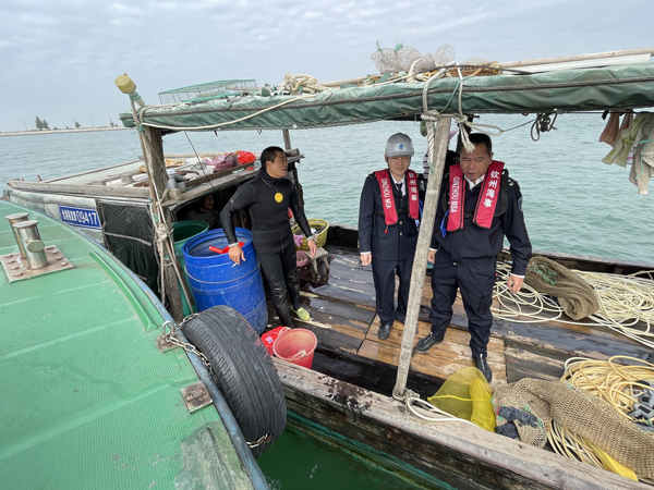 为了确保行动取得实际成效,参加联合行动的所有人员分成白天和夜间两个班次,轮流开展海上巡查执法。其中白天班由市农业农村局下属的市渔政渔港监督支队牵头,组织海洋局、海事局、交通运输局共12名执法人员和2艘执法快艇负责;夜间班由市渔政渔港监督支队牵头,和钦州海警局共同组织10名执法人员和2艘执法快艇负责。确保海上随时有执法人员在巡查,一旦接到举报或发现违法违规行为,能迅速实施处置。其中市渔政渔港监督支队负责查处违法涉渔“三无”船舶违法违规行为及非法捕捞行为,市交通运输局、海事局负责查处交通运输“三无”船舶和利用“三无”船舶开展非法载客行为,海洋局负责查处利用“三无”船舶非法采砂等破坏海洋环境行为,海警局负责查处“三无”船舶、海上暴力抗法等违法行为和维护海上治安、查处违法犯罪行为。