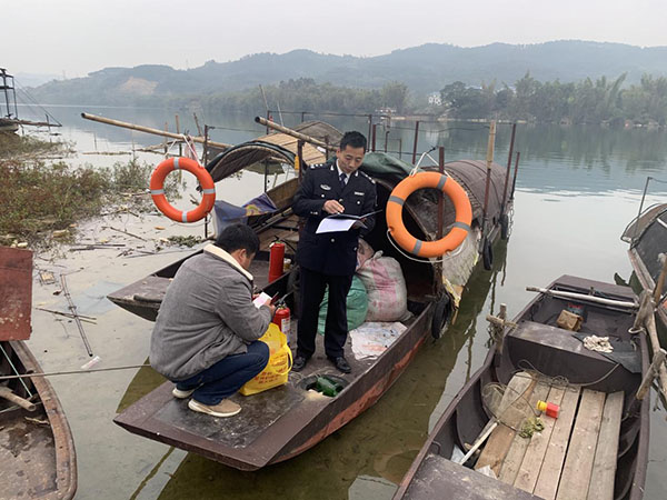 1月12日,柳城县滨江公园码头登船检查证书证件。