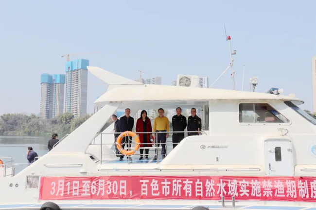 3月8日,市委农办主任、市农业农村局局长张国革同志带队到右江河水上巡航开展实施禁渔期制度宣传及执法检查工作。市农业农村局分管领导、市农业综合行政执法支队领导、右江区人民政府分管副区长及右江区农业农村局领导陪同检查。