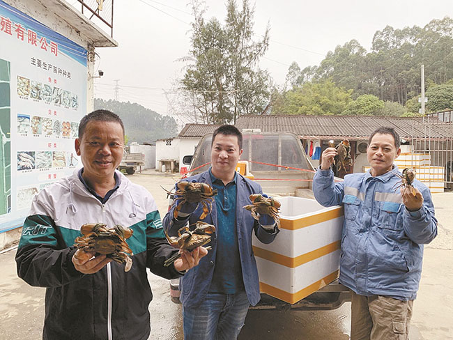 每逢螃蟹丰收季节,富群种苗繁殖基地还成了热闹的交易场所。苏中兴主动为养殖户牵线搭桥,拓展了福建、浙江、广东等地的销售渠道。其中,福建收购商还常年专程上门收购。如今,基地辐射带动港口区周边从事海水产业的养殖人员将近5000多人,养殖面积达2万多亩。