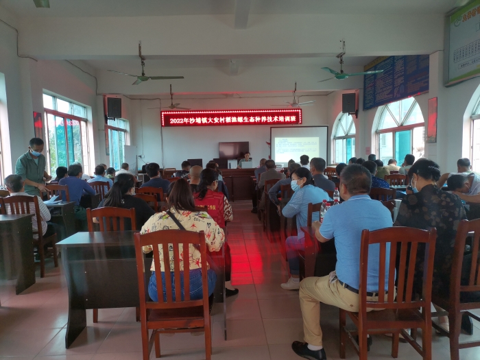 培训班邀请了柳州市渔业技术推广站站长、农业技术推广研究员文衍红为学员们授课,文站长结合柳州螺蛳粉产业发展、罗非鱼越冬反季节养殖及大安村的优势条件,讲授了稻渔螺综合生态种养技术、池塘循环水越冬大棚养殖技术,授课有理论、有基地、有示范、有案例,文字讲解与视频影像相融合,参加培训的学员们兴趣极高、专心听课。