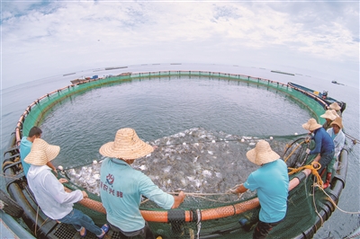 连日来,该公司已捕获了约4万公斤的金鲳鱼。接下来,该公司养殖的2万公斤老虎斑也将迎来收获。