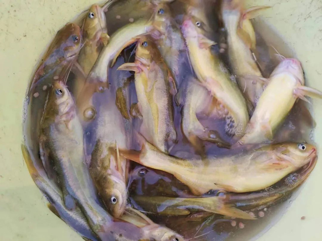 图为十万山瑶族乡溪水养殖的黄蜂角鱼