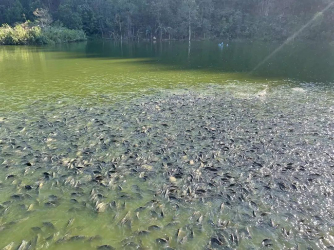 十万山瑶族乡地处十万大山南麓,气候宜人,拥有丰富的水资源,适合溪水养殖。自实施乡村振兴战略以来,十万山瑶族乡各村结合村情,因地制宜,大力发展溪水鱼生态养殖项目,主要采用“党建+N(合作社+农户+基地)”的经营模式,在村级党支部引领下,以村级股份经济合作社为实施单位,吸纳农户参与经验管理,打造溪水鱼养殖产业基地,先后在那稔村、垌平村、木排村建成了溪水鱼养殖基地,目前溪水养殖基地有黄骨鱼、叉尾鱼、斑鱼、草鱼、大头鱼、罗非鱼等多个鱼种,肉质鲜美、口感香嫩。