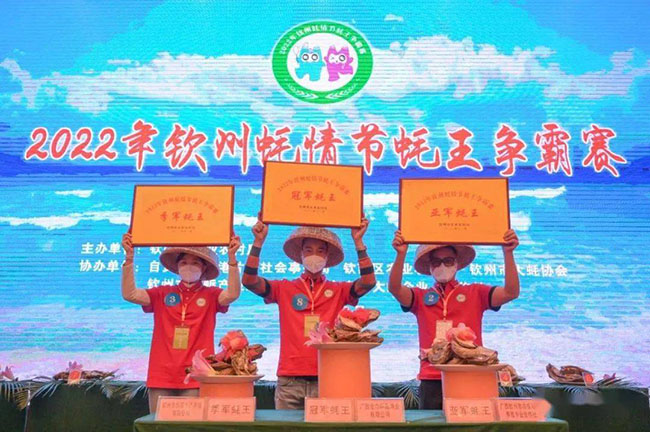 12月30日上午,2022年钦州蚝情节蚝王争霸赛如约而至。钦州13支队伍,带着养了十余年的大蚝来到现场,一决高低。通过对重量、长度、宽度、厚度和美观度等多个维度的评比,广西金海环岛渔业有限公司以1216.65的高分,摘得今年蚝王桂冠,广西钦州市海盛海水养殖专业合作社获得亚军,钦州市恒浩水产养殖有限公司获得季军。