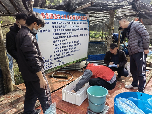 日前,桂林市农业科学研究中心、灌阳县科学技术开发中心、灌阳县扬帆养殖专业合作社承担的桂林市科学研究与技术开发计划项目“桂北山区冷水鱼生态养殖关键技术研究与应用”(合同编号:20210225-3)通过了桂林市科学技术局组织的现场查定。