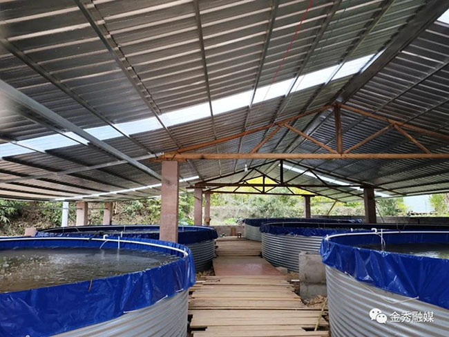 近日,记者来到三角乡三角村双河口高密度特种名贵鱼养殖示范基地看到,5个大桶整齐排列,这是三角乡保林种养专业合作社在后盾单位的大力支持下投资建设的镀锌板帆布圆桶高位池,用于特种名贵鱼养殖。