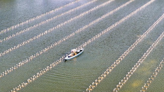淡水珍珠养殖基地构成一幅美丽的几何画面。