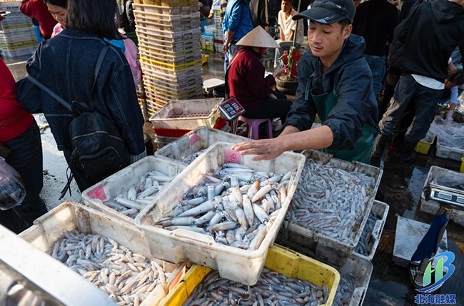 3月13日早上8时许,侨港镇电建码头人声鼎沸,一船船新鲜鱿鱼源源不断运抵岸边,客商与市民争相“抢鲜”,一派热闹景象。