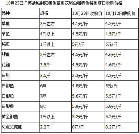 中国水产养殖网淡水鱼行情直通车数据显示,10月23日江苏射阳地区3斤左右草鱼收购价格是4.1元/斤,4斤以上草鱼收购价格是4.5元/斤,1斤以上鳊鱼收购价格是5元/斤,2斤左右鲤鱼收购价格是4.5元/斤,3.5斤花鲢收购价格是4.5元/斤,3.5斤白鲢收购价格是2.3元/斤,6两白鲫鱼收购价格是4.8元/斤,7两白鲫鱼收购价格是5.6元/斤,8两白鲫鱼收购价格是5.9元/斤,1斤以上黄金鲫鱼收购价格是5.2元/斤,2.2斤斑点叉尾鮰收购价格是8元/斤,和十月中旬相比,各个品种的价格基本稳定,上下浮动最多只有一两毛钱。对于养殖户来说,价格不好,卖鱼的积极性肯定很差。事实上苏中苏北地区鱼价整体都很差,主要就是因为各个塘口都有不少成品鱼等待上市,而一些湖泊水库也开始抓鱼,这方面因素影响也很大,“湖泊水库里的鱼质量一般都不错,不过有些地方捕上来的鱼皮毛不是很好,价格便宜一些也就卖掉了”。十一月份估计淡水鱼的上市量会更大,好在下月开始气温应该会进一步下滑,市场需求量会增加,可能在一定程度上抵消大量上市带来的跌价压力。