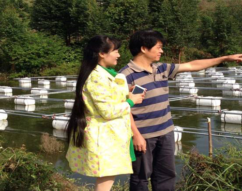 北流市农机局人员到六卜冲水库核验网箱补贴。