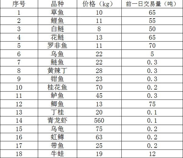 云南华潮水产品批发市场2015年12月24日水产品参考价格