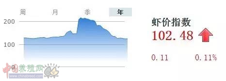 本周虾价整体持平,震荡产区集中在福建及华东一带。2016年8月3日,中国虾价指数收报102.37点,较上一统计日(7月27日)上调0.11点,涨幅0.11%,全国塘头虾价平均21.20元/斤(40支/斤,下同),环比上调0.02元/斤。