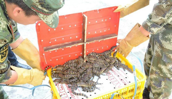 8月29日,广西防城港边防支队披露,该支队官兵在边境一线进行例行巡逻中,于中越边境一处码头查获国家一级保护动物暹罗鳄鱼苗940条,每条长约25厘米,刚出生15天左右。目前,案件已经移交当地林业部门处理。