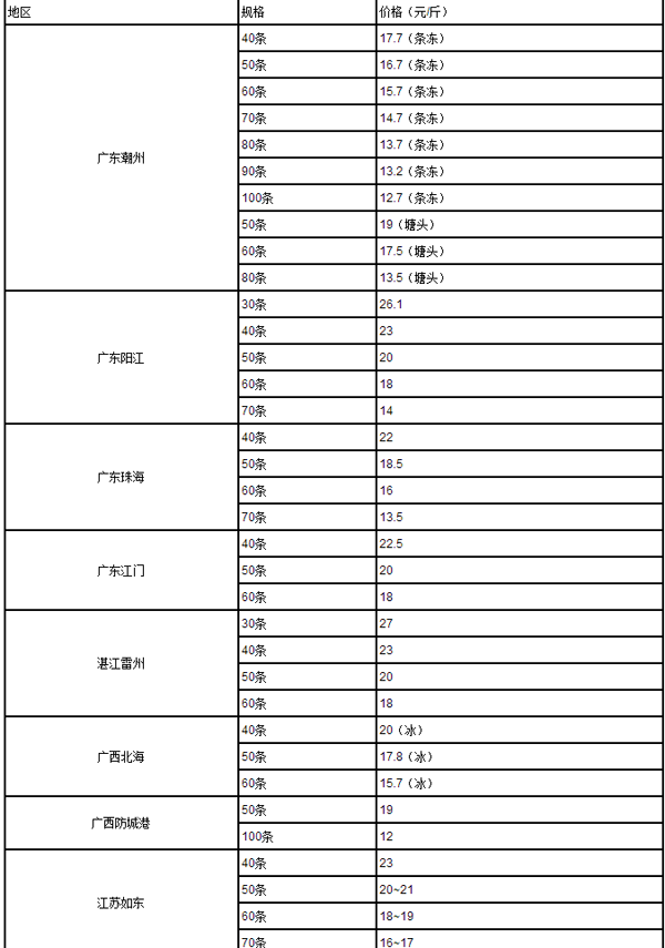 大规格对虾价格高位持稳,珠三角、广西涨幅达1元/斤
