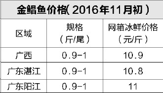 历经多次小瓜虫病害及缺氧死鱼等问题后,多个金鲳鱼产区进行了抢收,目前存塘鱼已大幅度减少,各地网箱存鱼规格大多集中在0.9-1.1斤/尾区间。相比之下湛江、雷州、阳江等粤西地区还保有一定的存量,网箱金鲳鱼存量约60%。而广西铁山港、钦州港、防城港等地经过大规模抢收后,目前网箱金鲳鱼存量仅30%左右。 按照目前养殖现状,池塘鱼基本已经出完,网箱存鱼不多,但鱼价依然比较低迷,0.9-1斤规格仅10.9元/斤左右,养殖户普遍存在惜售心态,成交量较少。 有业内人士分析,目前金鲳量少价低的原因主要如下:目前国外金鲳订单较少,国内市场消化乏力,前段时间因为小瓜虫、缺氧慢料等原因抢收的小规格金鲳还有相当部分积压在冻库,目前冻厂收购大鱼的意愿不强,甚至部分养殖户去年鱼价低没有卖出冻起来的鱼由于今年鱼价更低迷,抱着惜售心理,错过了最佳销售时机目前被迫还冻在冷库难以消化。 随着水温降低,小瓜虫病害基本消失,但昼夜温差大,吃料慢,生长速度将大幅降低,后期金鲳料比也较高,不过,由于目前鱼价低,大部分养殖户存在惜售心理。 |