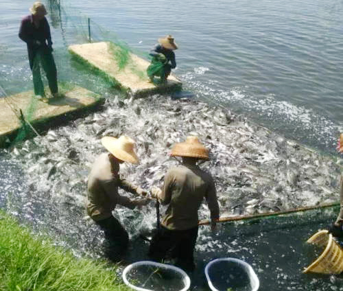 由于行情差,投料减少,每餐投10包料的减为投2-3包,个别鱼塘水质差的出现死鱼。整体说,停料不再投喂的有4-5成,只有1-2成投足料,这也是后期要抓鱼了多喂点,不让鱼太瘦,抓鱼的客户大部分都会继续投苗,只是很少喂料,慢慢看行情喂料,有2-3成左右不再投苗,或转养四大家鱼。有海水地方鱼虾混养还好些,有虾的补贴,喂料积极性大点。