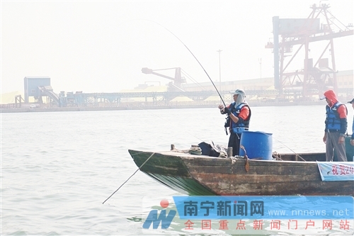 国内外海钓爱好者在广西海域比拼钓鱼技术