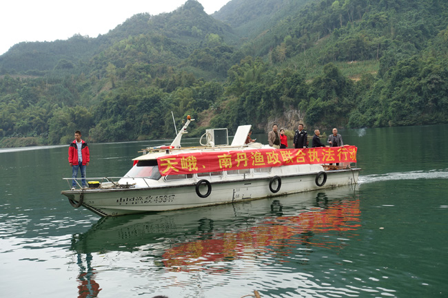 11月7日,南丹县水产畜牧兽医局局长潘宝丹、吾隘镇党委书记莫荣林、天峨县水产畜牧兽医局副局长黄掌吾等三个部门带领南丹县渔政执法人员、吾隘镇政府人员及派出所执法人员、天峨县渔政执法人员共二十多人组成联合执法组,对红水河龙滩大坝下游至南丹县吾隘镇河段的所有渔船和“三无”船舶展开地毯式检查,大力整治各类违规渔具。