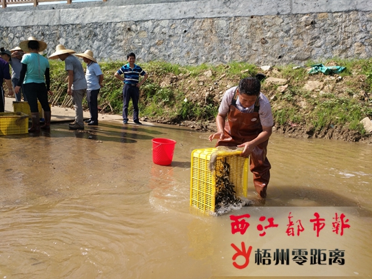 当天上午,工作人员对准备投放的鱼苗进行现场称重和验收,确保这批鱼苗的质量和规格均达到放流标准。随后,工作人员把鱼苗投入江中,一尾尾鱼苗迅速游离岸边。据了解,梧州市渔政部门计划在2019年度增殖放流各类鱼苗300多万尾,自今年3月1日禁渔期以来,已经开展了四次行动,共增殖放流鱼苗270多万尾。其中,鳙鱼鱼苗80多万尾,赤眼鳟鱼鱼苗60多万尾,鲢鱼鱼苗约138万尾。