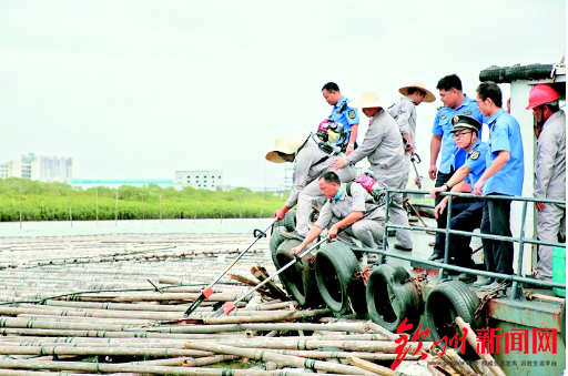 7月7日下午,钦州港经济技术开发区生态环境局、农办、海洋分局、综合执法局、公安分局、综治办等多部门组成执法力量,依法清理茅尾海红树林自治区级自然保护区(钦州港辖区)海域的非法养殖设施。