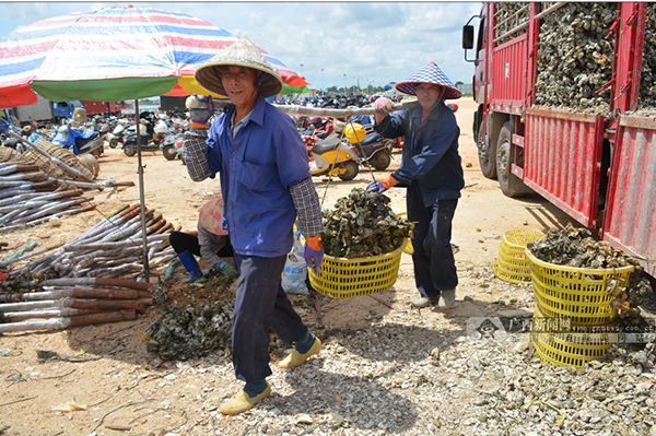 装车的大蚝即将运往市场。