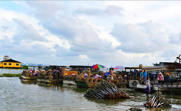 码头“很忙”,蚝苗从这里运往海里养殖,大蚝从这里上岸。