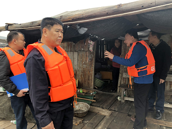 清理整治行动小组在耐心劝导网箱养殖户配合整治工作