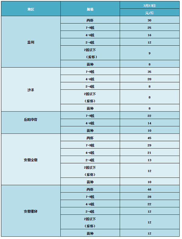 安徽区域:市场流通量小,虾苗普遍偏小。