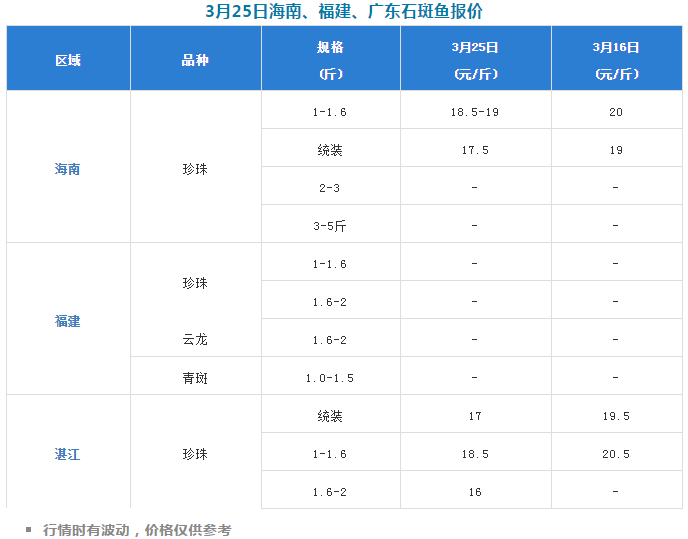 本周海南报价1-1.6斤/尾报价18.5-19元/斤,统货17.5元/斤,湛江地区1-1.6斤/尾报价18.5,1.6-2斤报价为16元/斤,统装价17元/斤,福建地区报价暂不明朗。按照市场行情来看,湛江、海南地区统货基本已经跌破成本价,养殖户存塘压力巨大,市场哀声一遍。