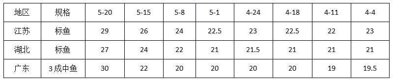 今年鳜鱼价格低迷从开春一直持续到五一,尤其是五一之前江苏湖北等地养殖户出鱼量大增,导致五一之前鳜鱼价格不涨反跌,而五一期间的好行情也就持续了两三天,然后就不好了。不过五一之后江苏湖北等地鲑鱼的量也不大了,塘口价格开始慢慢回升,目前广东地区优质鱼价格已经突破30元/斤,江苏高邮标鱼也涨到了29元/斤。