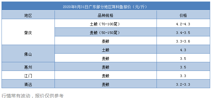 饵料鱼方面,近期各种饵料鱼都有了0.2元/斤左右的涨幅,麦鲮价格基本维持在3.3-3.5元/斤区间,土鲮在4.2-4.3元/斤这样子,泰鲮在3.3-3.6元/斤之间。随着饵料鱼水花生产接近尾声,未来随着供应量减少价格会慢慢出现上涨。