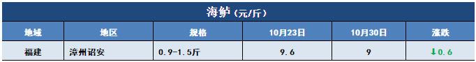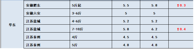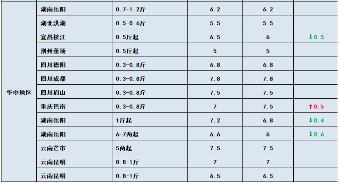广东珠海:环比上周,价格下跌,1.0-1.1斤价格7.6元/斤,1.1-1.2斤价格7.8元/斤,1.2-1.3斤价格8.0元/斤。
