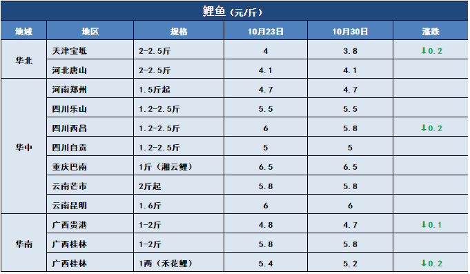 河南郑州本周价格趋于稳定,走鱼较快。天津宝坻受捡底影响,价格持续走低。