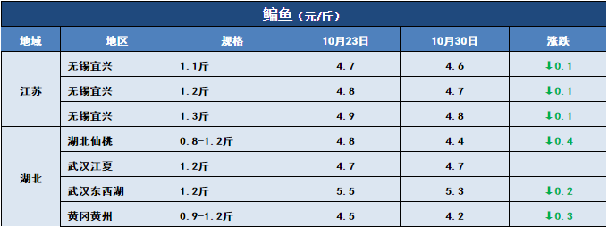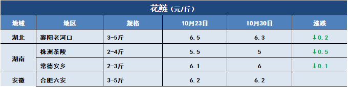 本周花鲢价格整体平稳,不过湖南株洲地区花鲢价格下跌较快。