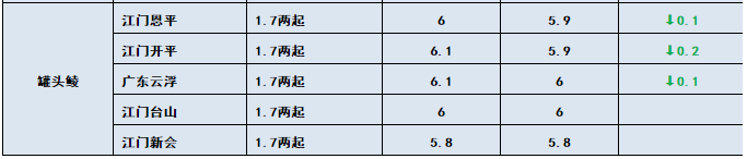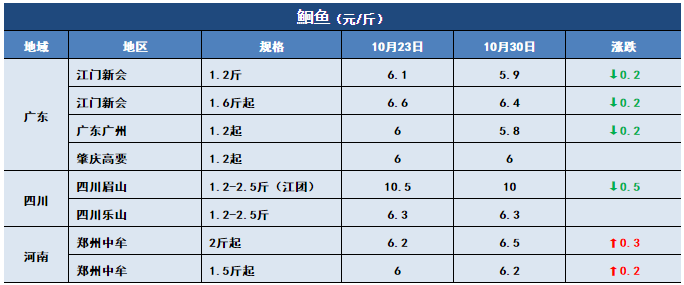 广东江门:新鱼大量上市,很少北方鱼车南下抓鱼,加上广东本地市场消费少,导致价格环比上周下降0.2元/斤。
